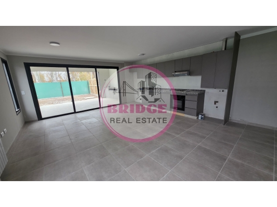 Dólares AmericanosBRIDGE INMOBILIARIA ALQUILA Casa a Estrenar, en Barrio Privado, la misma cuenta con 2 dormitorios uno con placar y el otro con vestidor, ante baño y baño, cocina comedor y galeria techada, calefaccion central por radiadores, pre instalaciones para aires acondicionados, jardin con riego por aspersion, cochera para dos vehiculos en forma paralela techada con liviano.